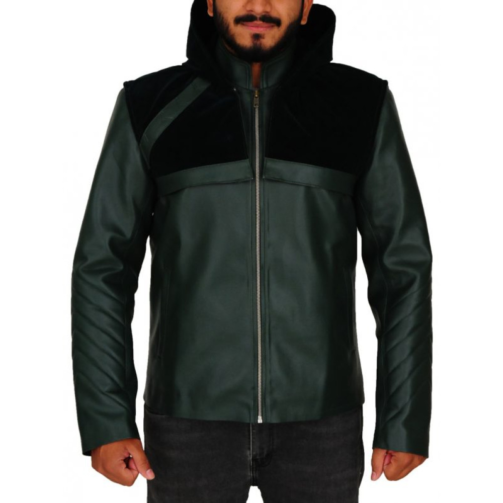 Men’s movie and drama series jackets are the most audacious and smart ways to look bombastic in today’s at the height of fashion civilization and it is one of the most latest thing for your selection for any athletic interact. We at Samish Leather online store convey for men this Green Stephen Amell Men’s hooded Leather outfit, which was donned heroically by Stephen Amell performing the role of Oliver Queen in the prominent TV series, “Arrow” one of the best quality outfits in our whole attire compilation that is made considerately by our specialized team of tailors and is obtainable at a conspicuous price.