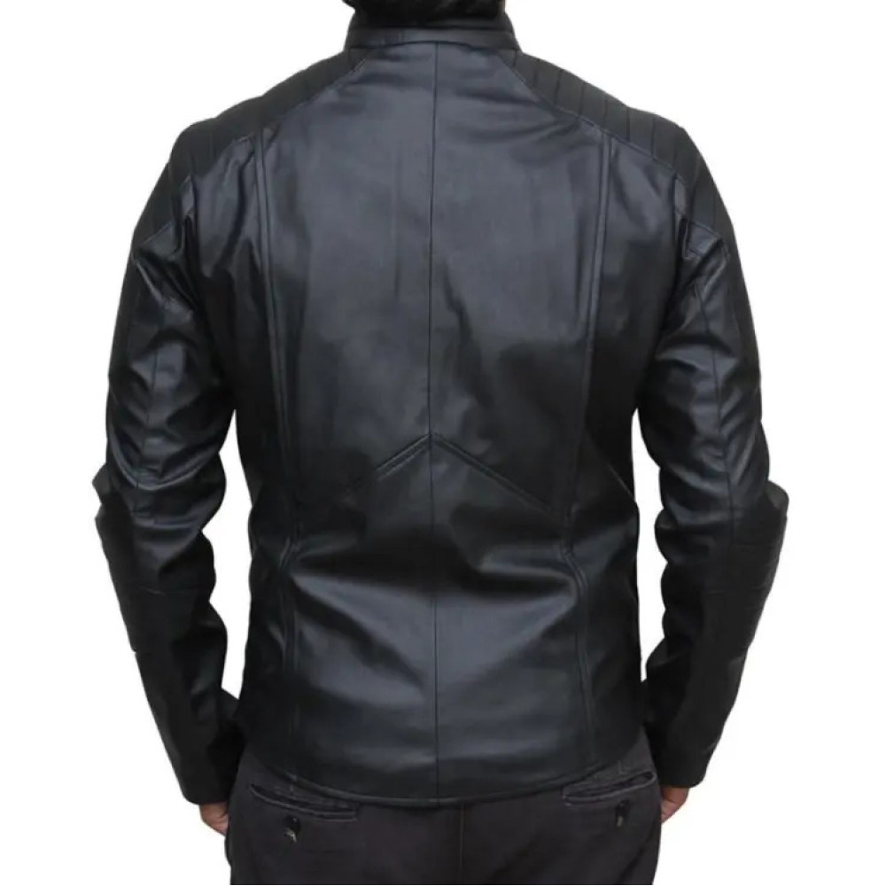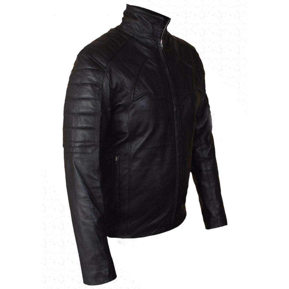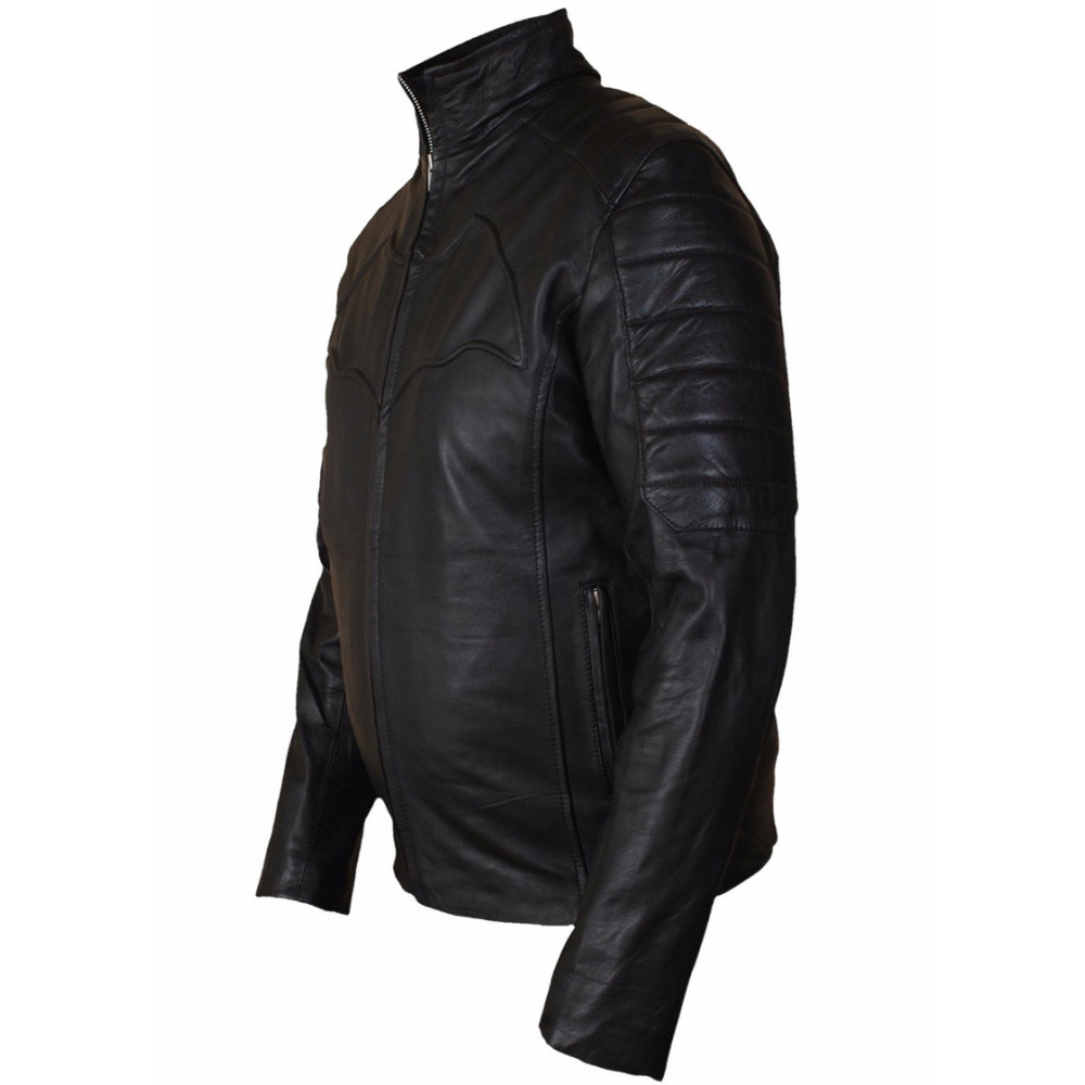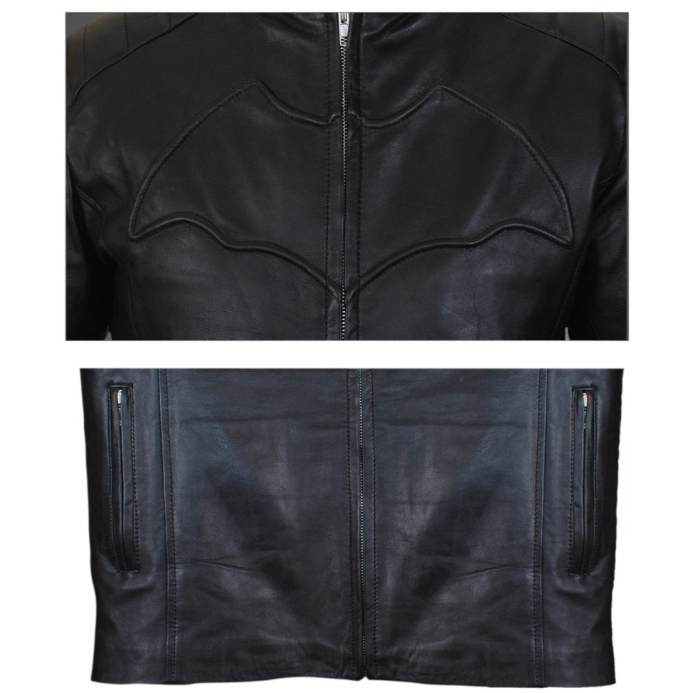 The Batman Begins Christian Bale Black jacket is a Batman costume theme jacket which is nicely manufactured with Real leather and viscose lining is also used internally for comfort. It has a design with full front zipper and long sleeves with zippered cuffs. This dark black jacket has a Batman logo embossed at front.
