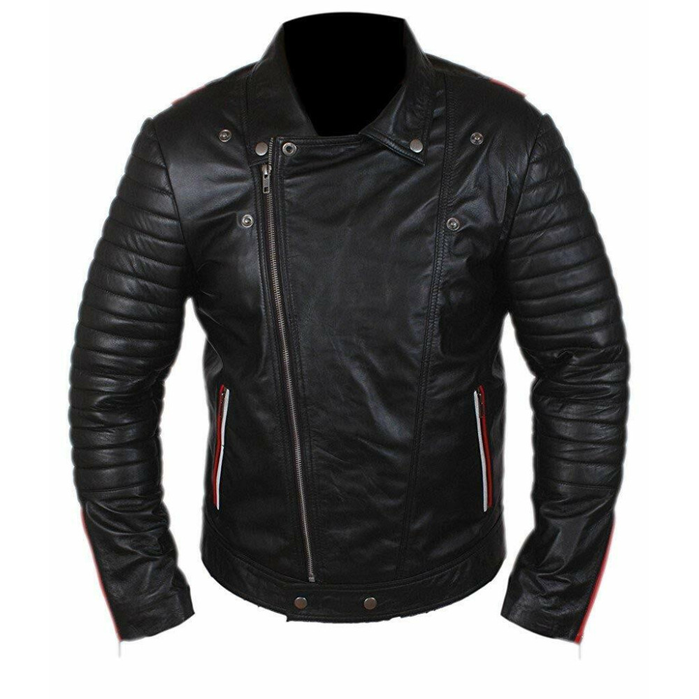 In its conception, it carries a Lapel style collar, front YKK slanted zip closure, snap button at waistline, bomber style sleeves and zippered cuffs. Marvelous tailoring is done throughout, to make it a long lasting outfit for your wardrobe that is best for casual hangouts, dating, clubbing, parties, motorcycle tours and any casual moment to seem daring. Hurry, order one now to get worldwide shipping, 30 days Return/Exchange Policy.