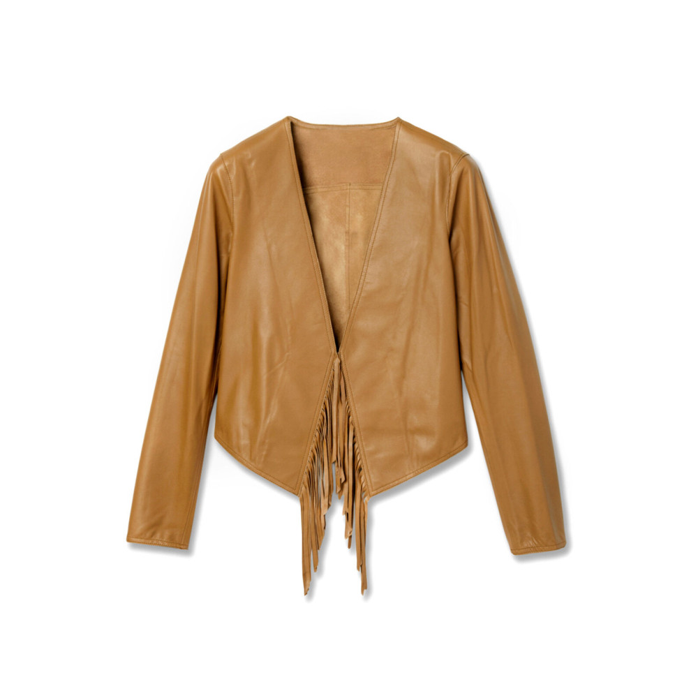 Brown Women’s Fringe Trim Leather Jacket