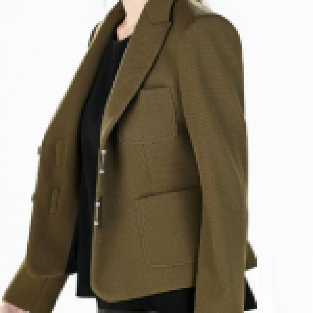 The stylish coat for women is made of wool material as an exterior and viscose lining on the inside stitched by the skilled tailors. The other features of the coat are comprised of its attractive green color and the front with hook closure along with collar coat style. The sleeves of the coat are full with open rib cuffs along with pockets on chest, waist and inside makes it modern looking.