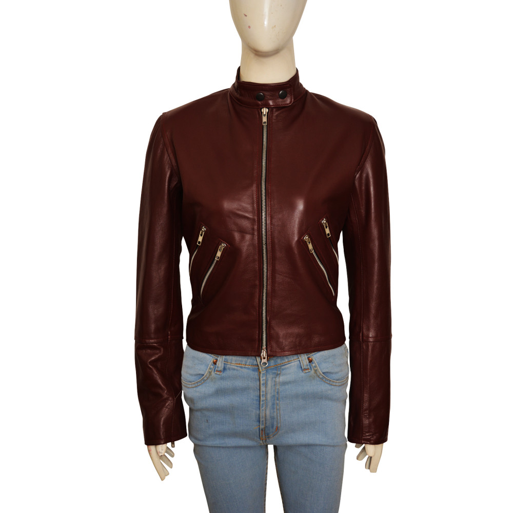 Made with genuine leather and finished in a maroon color, this jacket has a viscose interior lining as well as pockets hidden inside. Plus, it features a smart shirt style collar along with full sleeves and zipper closure. To make the deal even better, you can order it for free international shipping and for a discounted price.