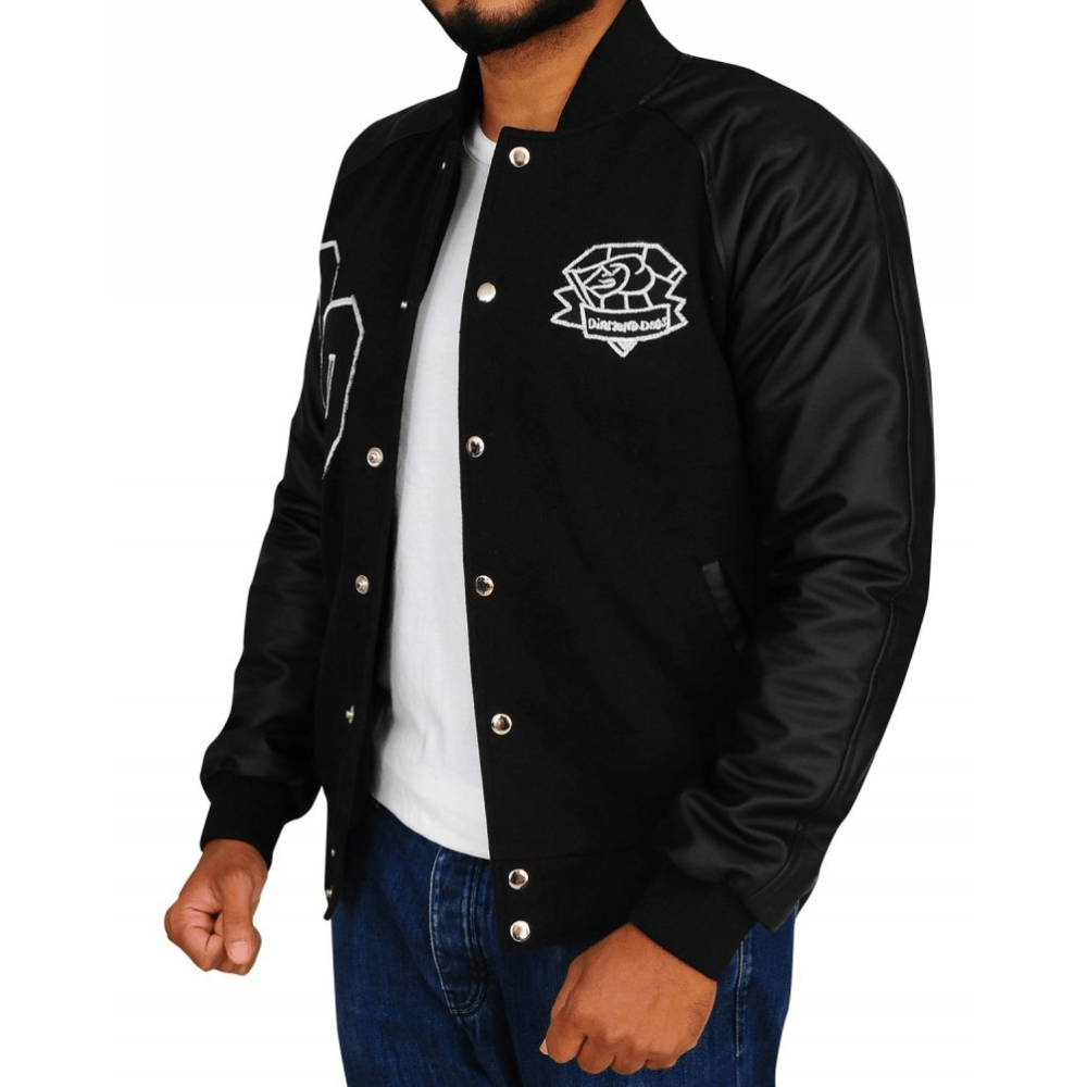 Acknowledging the fan-craze for this game, we present over here a beautiful varsity jacket. This is a black colored jacket made from Wool + Leather. Its main features include a stand-up collar with buttoned front closure and full-length sleeves. It has a rib-knit lining at the cuffs, collar, and the waist which gives it a soft feel. The Diamond Dogs Big Boss Varsity Jacket looks unique because of ‘Diamond Dogs’ and ‘DD’ logos on the front, whereas the back side is adorned with a ‘Big Boss’ and 84 number logos.