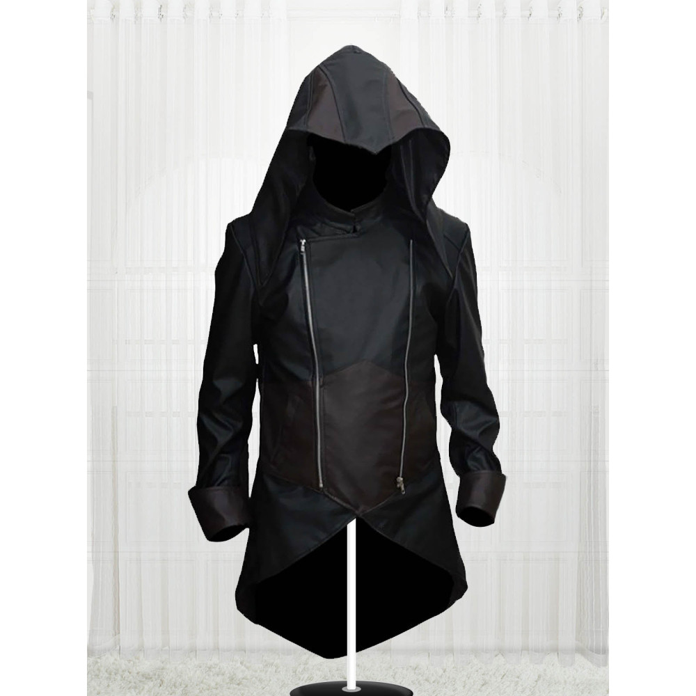This Exotica Assassins Creed Unity Hoodie Coat is one such example of the high demand and love for Assassins Creed merchandise. It is both brown and black in color and has been made from the finest faux leather material. A collar hoodie is attached to it and it is very comfortable for the wearer because of the soft internal viscose lining. There are pockets on the waist and inside and it comes with a front zipper closure.