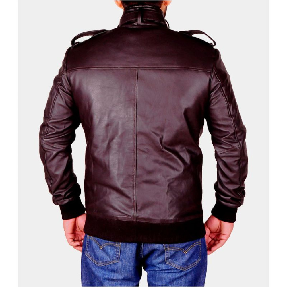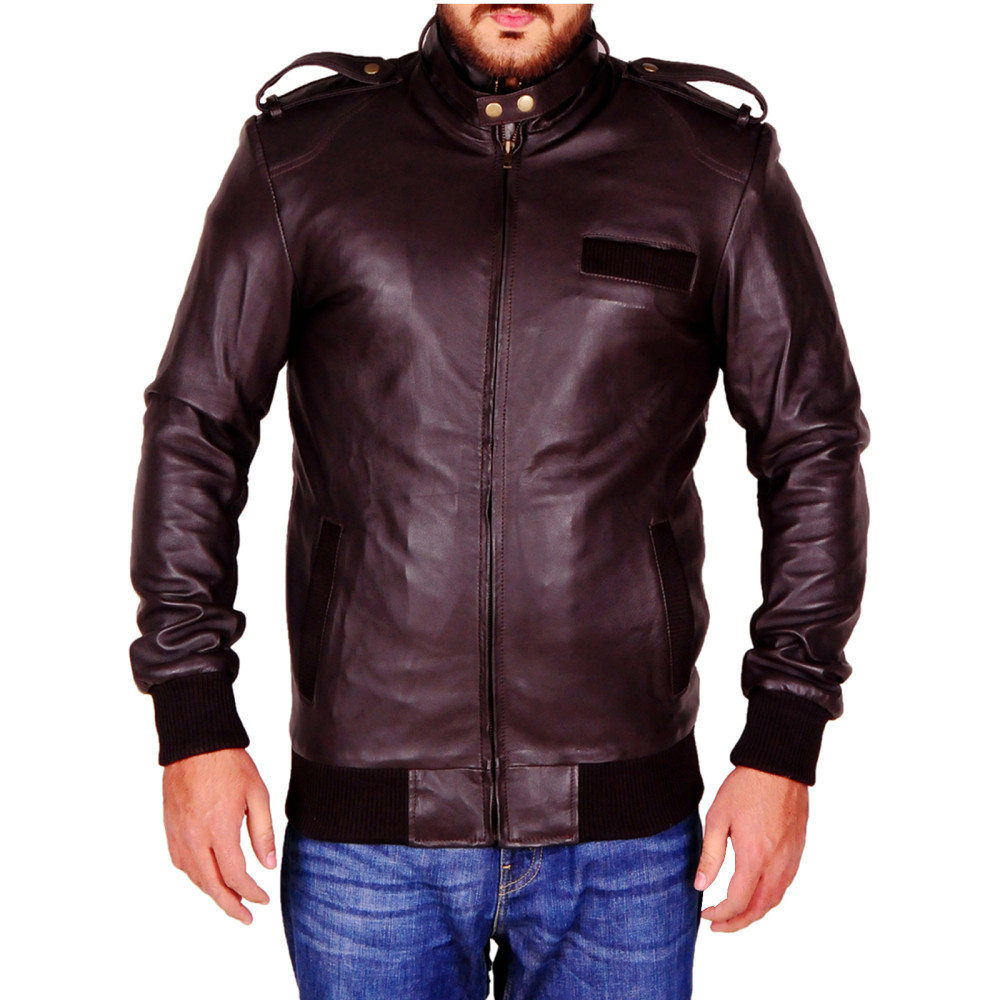 • Real leather is used in the fine making of this jacket. You will not only find it durable but comfortable as well because it comes with viscose lining on the inside that feels pretty smooth and soft. It’s a dark brown jacket with rib-knitted collar, cuffs and hemline. You may use the front zipper and collar buttons to enjoy complete closure and perfect fitting. There are also pockets inside and outside the jacket for sufficient storage.