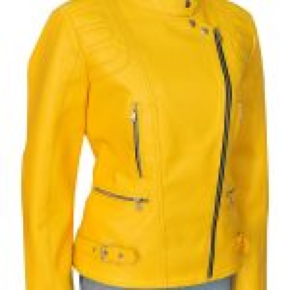This actress is often spotted wearing a bright yellow leather jacket. This beautiful yellow biker jacket is made up of leather and has viscose lining. This full sleeved jacket comes with a shirt lapel collar and a Front Zipper. The two front zipper and inside pocket provide ample space for the user to keep their wallet, keys, and smartphones.