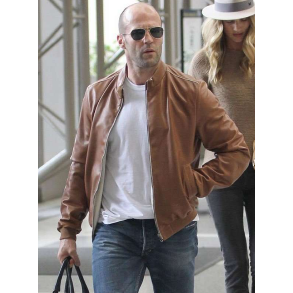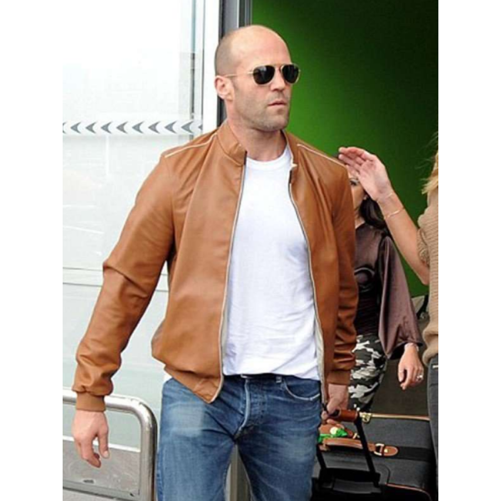Jason Statham Brown Bomber Leather Jacket-Men