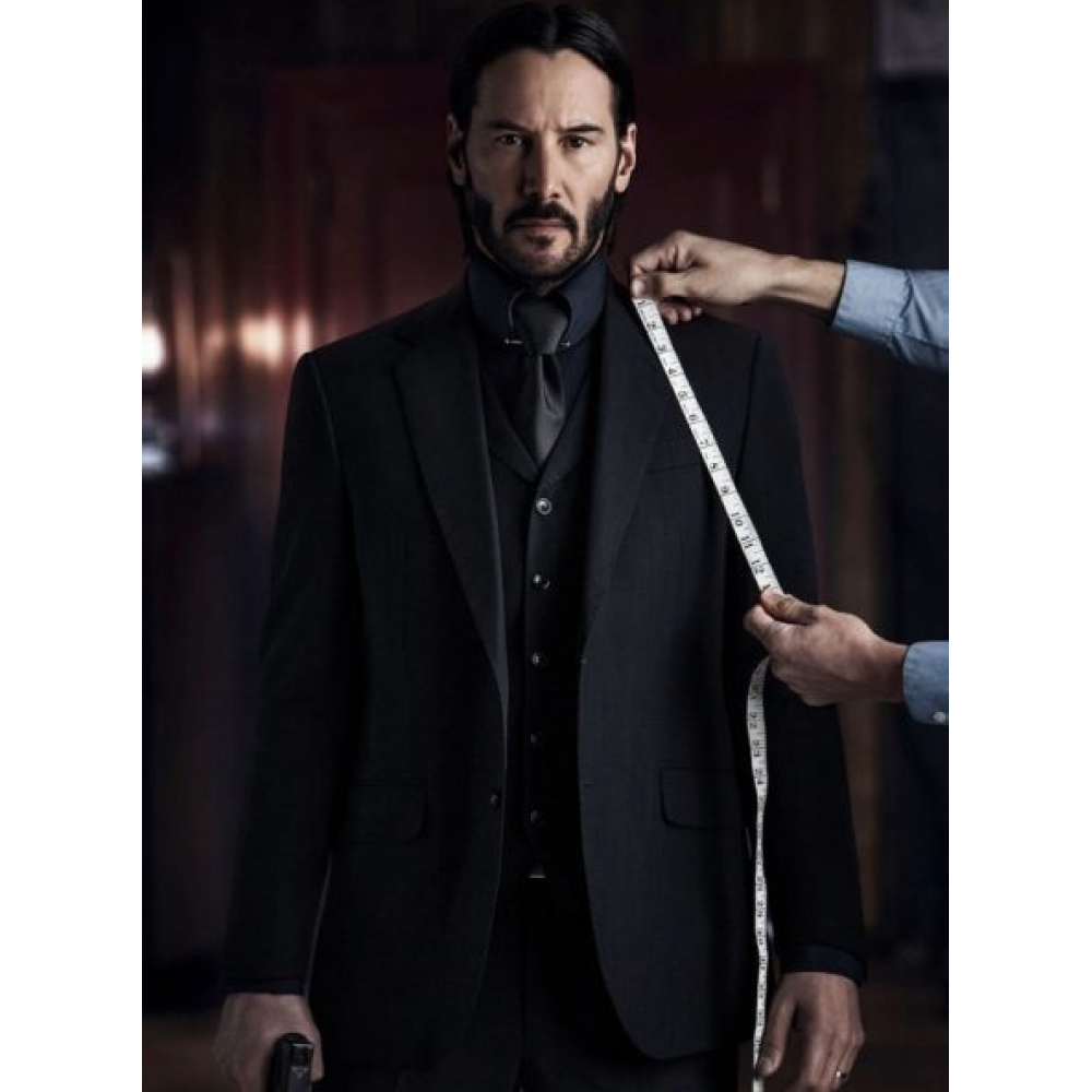 - This John Wick: Chapter II Coat is made up of cotton fabric. It is available in black color with lapel style collar. You can wear it to a formal party or on wedding. It has full sleeves with open hem cuffs and front button closure style. The Coat also has pockets on the front side. It is available in all sizes.