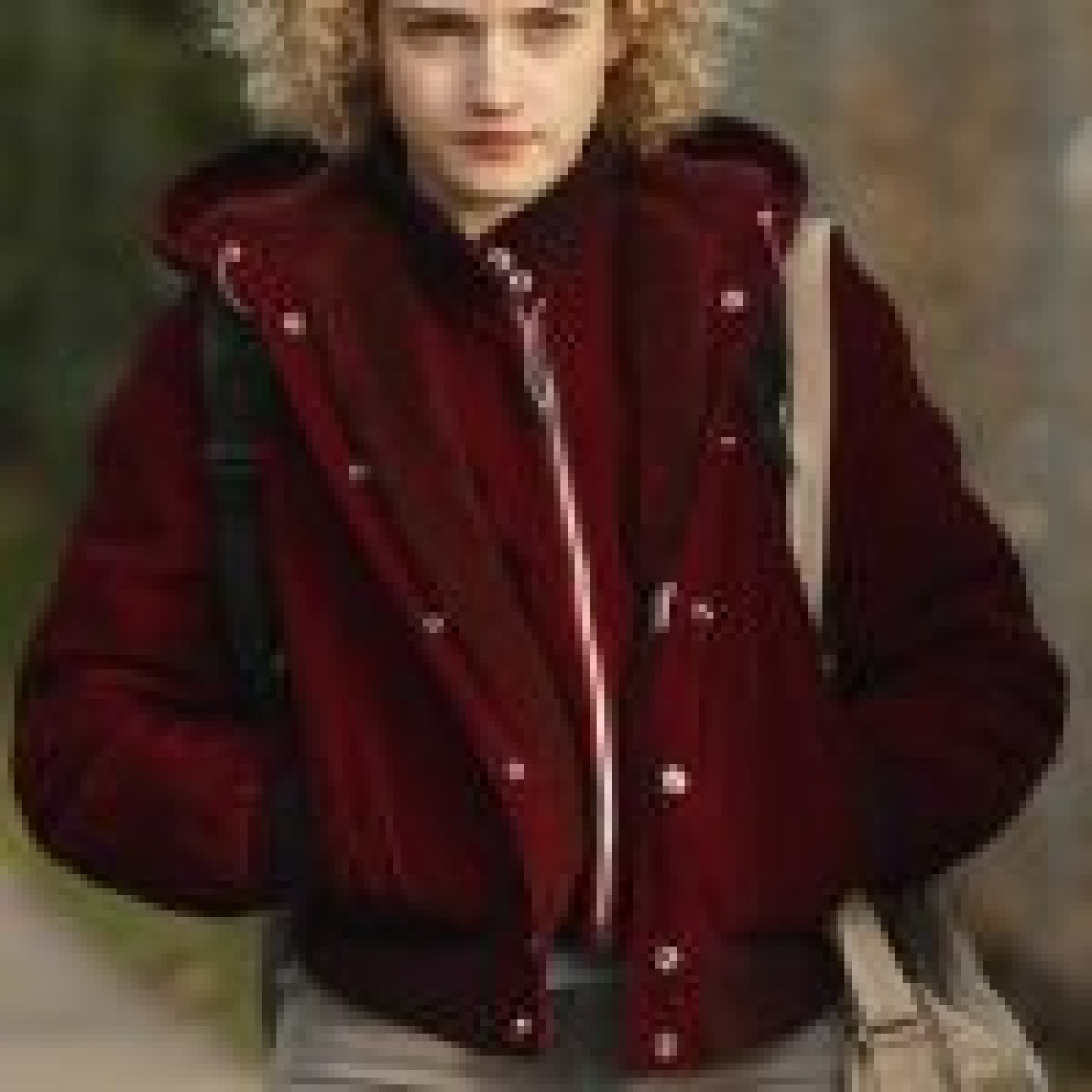 Julia Garner the Americans Jacket is a gorgeous and attractive piece of attire for casual gatherings and regular routine. It is prepared with top quality of fleece that makes it quite warm and cozy. Featuring blood Maroon color, this jacket has rib-knit cuffs and waistline. It comes with a hooded collar and snap-tab buttons at front for complete closure. This full sleeve jacket also has two pockets at waist to keep your hands warm.
