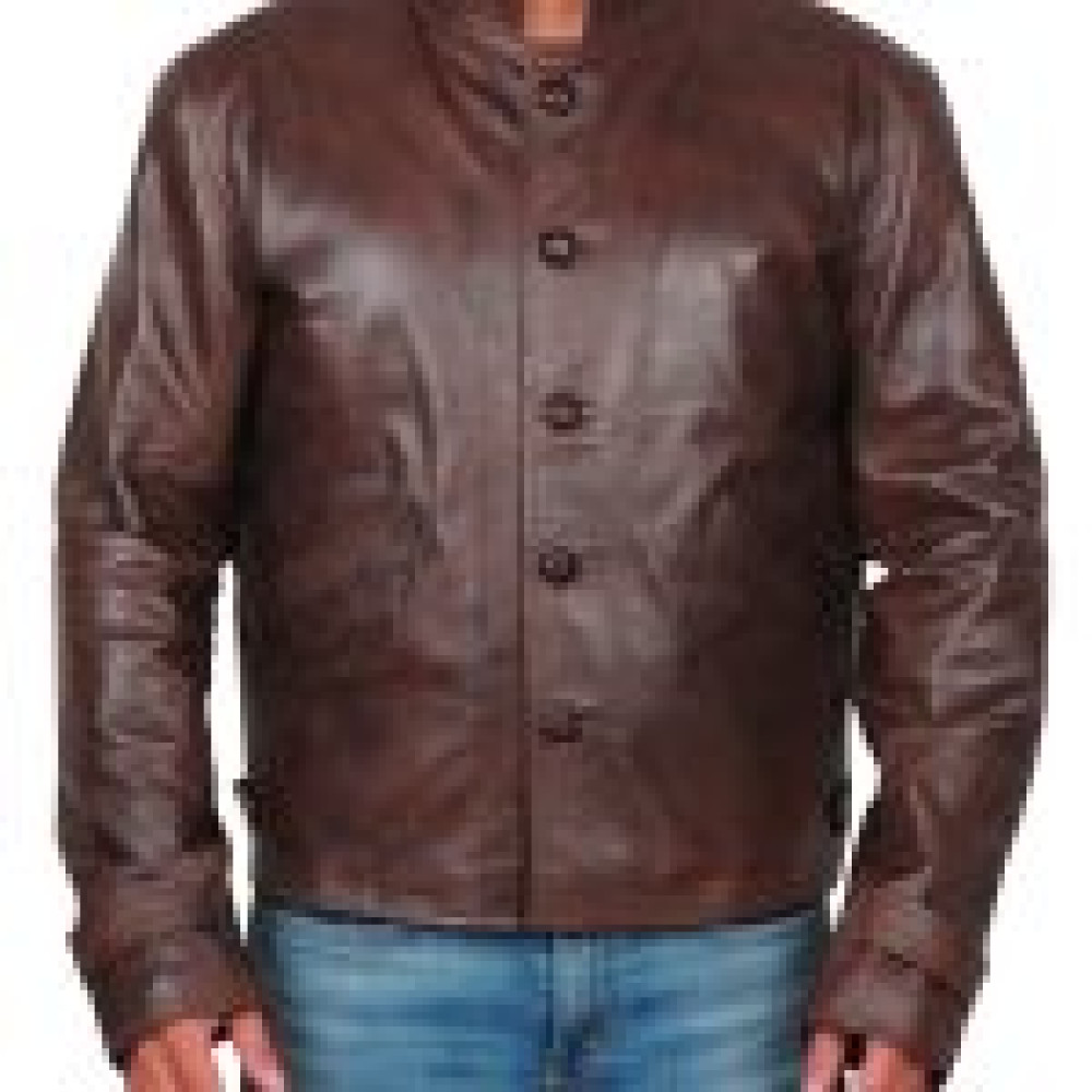 The jacket is available in all sizes so go for your suitable size and stop worrying about fitting. It’s brown in color and comes with golden buttons at front for easy closure. The jacket features a beautiful smoky effect that looks pretty classy and innovative. We have used Real leather in the making of this jacket and also attached viscose fabric on the inside to make it highly comfortable. It has full sleeves with strapped cuffs and multiple inside and outside pockets for easy storage. So place your order now and enjoy winters in style!
