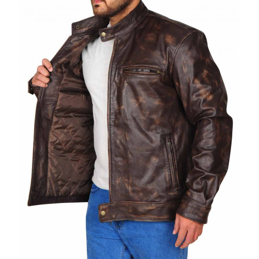 • This is MacGyver jacket inspired from the TV series ‘MacGyver’. Lucas Till wore this jacket in this TV series. The material used for this jacket is Distressed leather. It has inner viscose lining, snap tab collar, full length sleeves, inner viscose lining, branded zipper closure, front pockets and inside pocket. It is available in brown color. You can wear it for casual and formal occasion. It adds grace to your personality. You can easily move around in this jacket. Order this leather jacket in all sizes at quite economic prices.