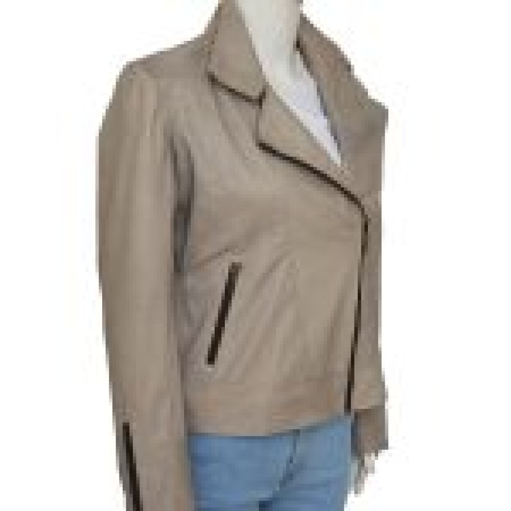This Chloe Grey leather Jacket comes in multiple sizes. It has collar lapel style and comes in color Grey. The material of this stunning product is Faux Leather. It is an extremely handy product with its amazing zipper pockets on the inside and outside. This jacket is a perfect blend of casual and chic.