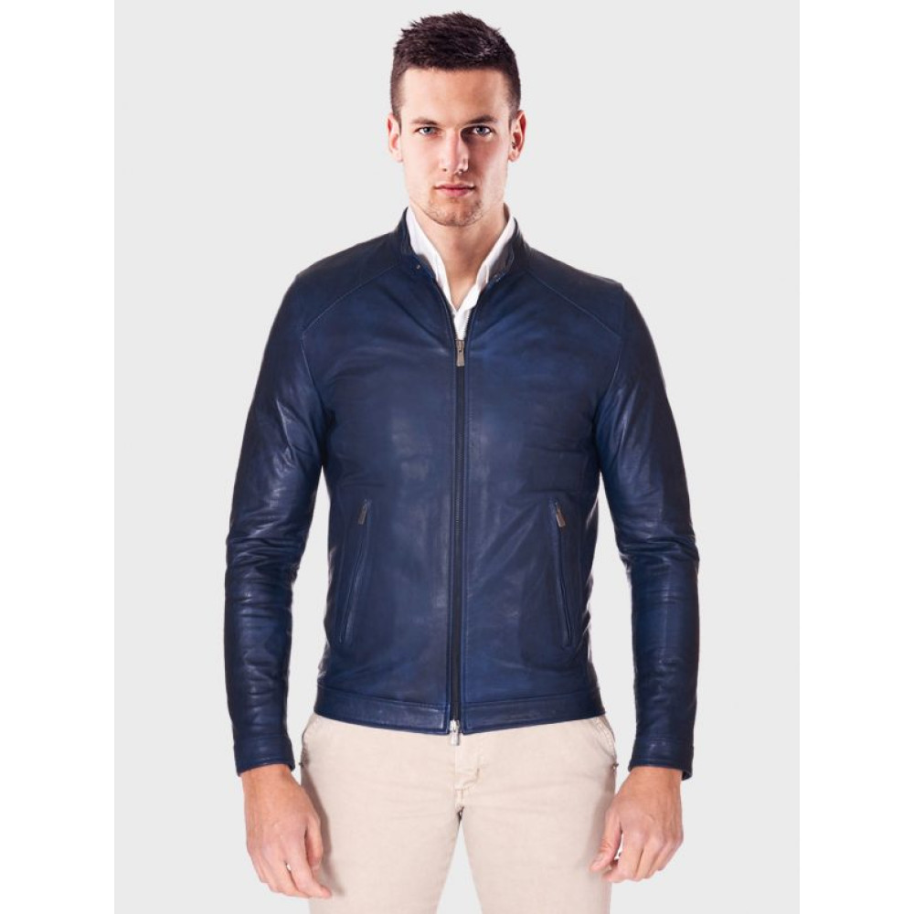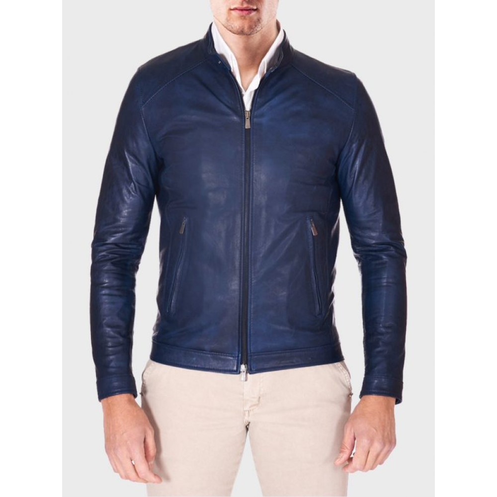 +44 07745262891Men Ionic Blue Biker Leather Jacket