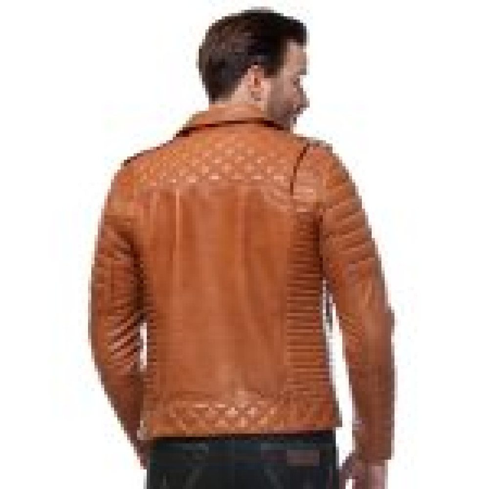 Another exciting addition to jackets you will find is this ultra modish biker jacket. The tan color outfit is designed in with quilted patterns all around. It has all the masculine qualities which perfectly suits anybody and adds charm to his personality. The slim fitting and the design overall present a British heritage biker racer.