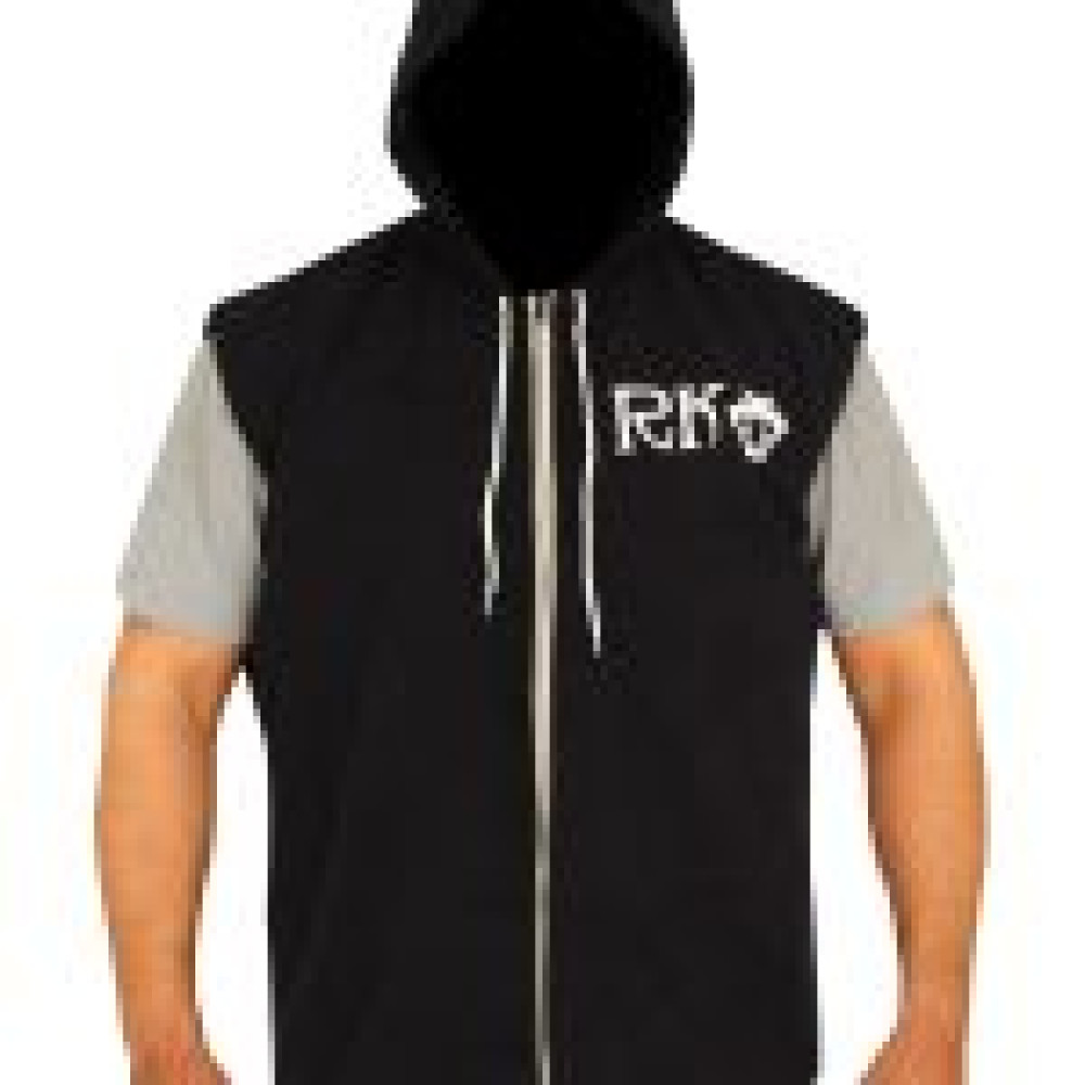 - For now, just focus on this hoodie vest and win the style game. It’s made up of fleece fabric and is pretty comfortable and warm. Black in color, this hoodie comes with white characters on right chest stating ‘RKO’. There is a zipper at front that goes all the way up to the neck and closes pretty smoothly. You can tight or lose the hood by using its laces.