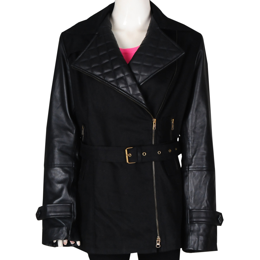 From Maura’s desirable wardrobe, we’ve this Sasha Alexander Rizzoli & Isles Maura Isles Black Coat. It’s a remarkable hip length coat, manufactured with cotton + leather material whereas sleeves and collar are prepared with leather. It has a lapel style collar and full front asymmetrical zipper for closure. This gorgeous black coat exhibits quilted pattern over lower collar and its cuffs are designed in open hem style. For better waist fitting, a belt is also provided which defines the physique more appropriately.