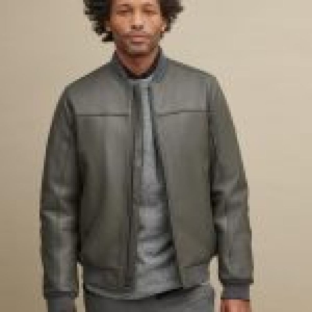 +44 07745262891Stadium Men’s Grey Bomber Leather Jacket
