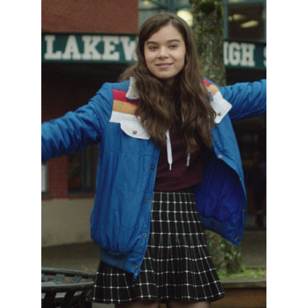 This cute Blue Jacket is from 2016 Movie the Edge of Seventeen and from its main character Nadine, played by the talented young artist Hailee Steinfeld. Her character is a very closed off and emotional character who attempts to fit into a society which she finds difficult to relate to, especially after the death of her father. She is a very resilient and strong character who fights adversary in an attempt to be heard.