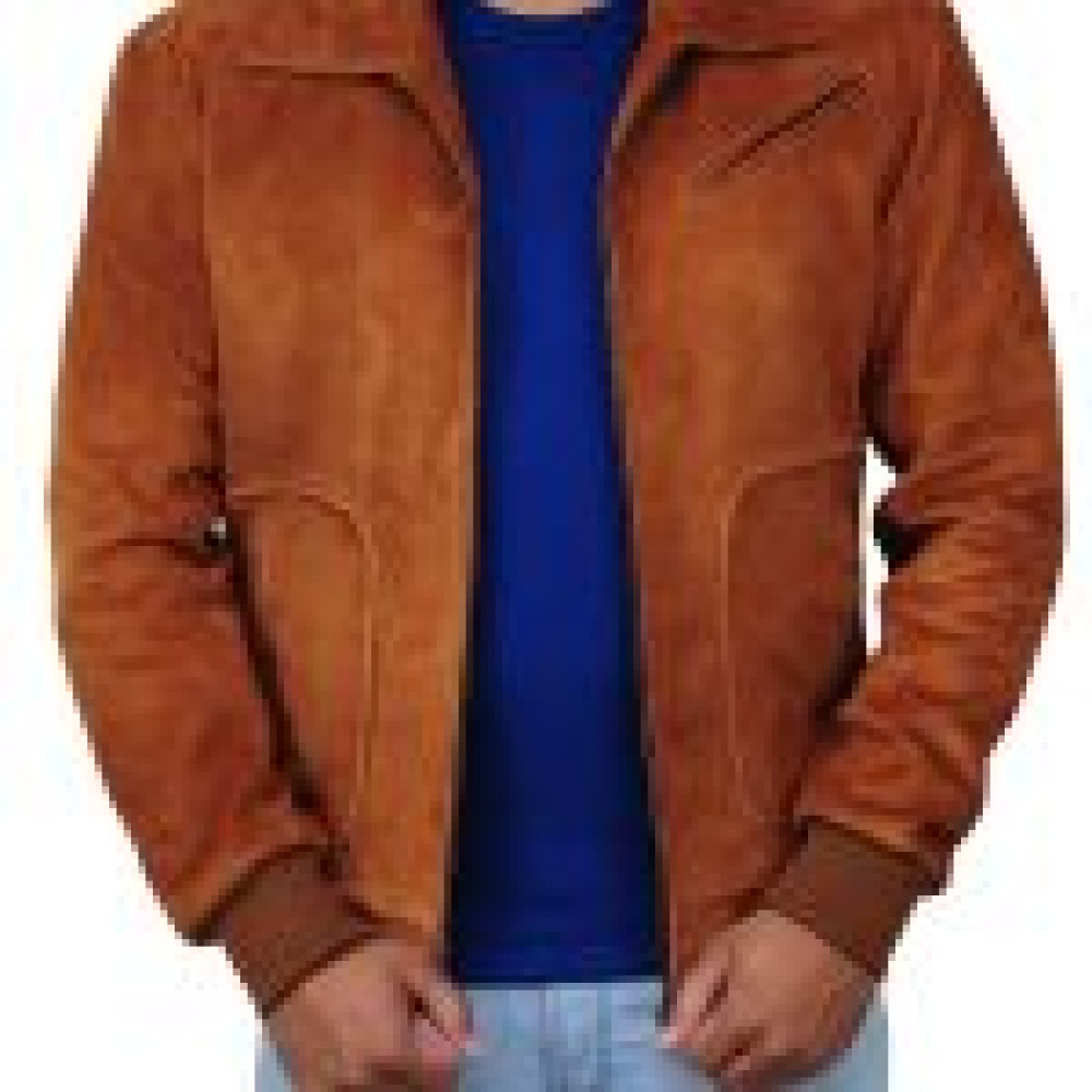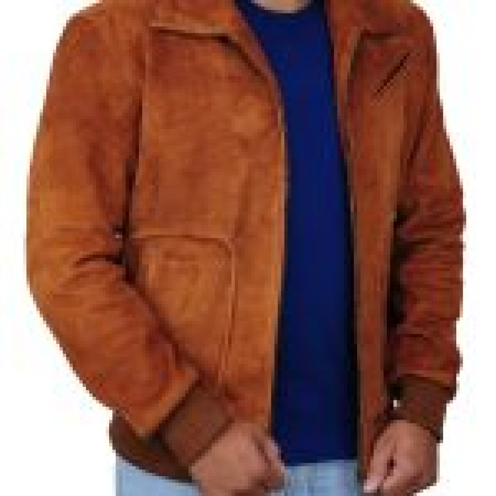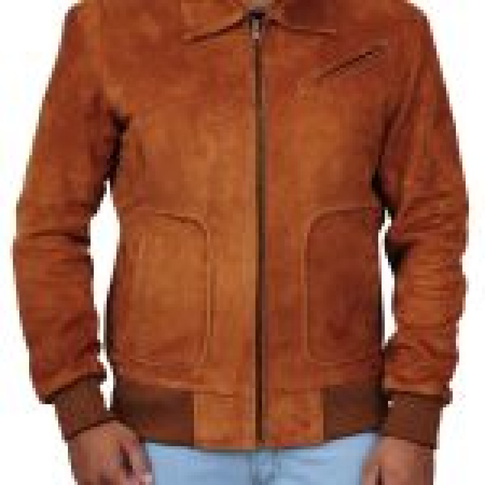 We have crafted this piece expertly with the fine use of suede leather that gives a matte effect and offers a smooth touch. It’s a bright brown colored jacket with zippered front and shirt styled collar. The cuffs and hemline are neatly rib-knitted offering a flexible and comfortable fit. There are two pockets at waist and one zippered pocket at chest enhancing the design with simplicity. Overall, it’s a finely finished jacket that you can use casually.