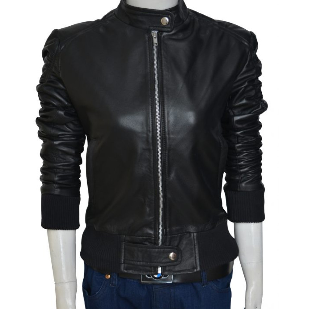 This jacket has been inspired by the influential character of Nina Dobrev for her role in the TV series ‘The Vampire Diaries’. The material used for this jacket is real leather. It is available in black color. It has full length sleeves with rib knitted hem cuffs, standup style collar, inner viscose lining, YKK zipper closure, and is tailored beautifully. This jacket is quite in demand among ladies because it is comfortable, stylish and durable. You can easily carry it for prolonged hours. It is available in all sizes.