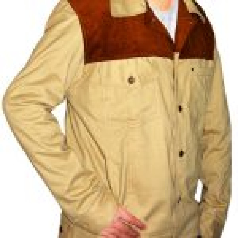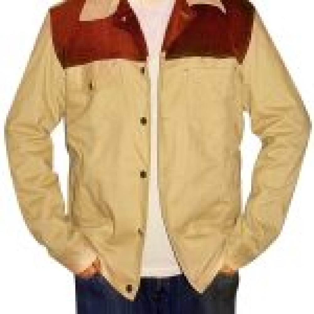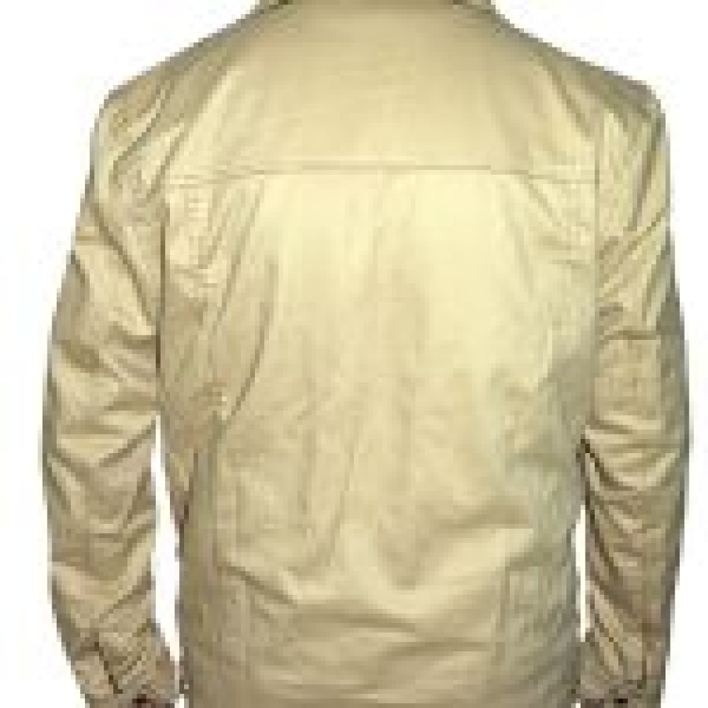 This brown + beige color  jacket is made from 100% pure cotton fabric and is available in our stores at a very exclusive discount for a limited time only. This full sleeved apparel comes with buttoned cuffs and is a very stylish item in our collection. It is equipped with a full buttoned front closure along with an array of pockets traditionally placed along the waist for maximum utility.