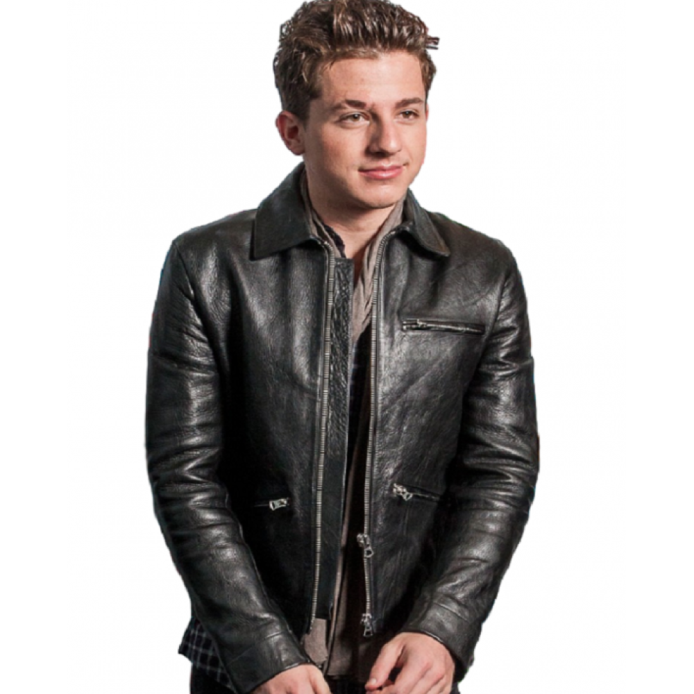 +44 07745262891US Singer Charlie Puth Black Leather Jacket