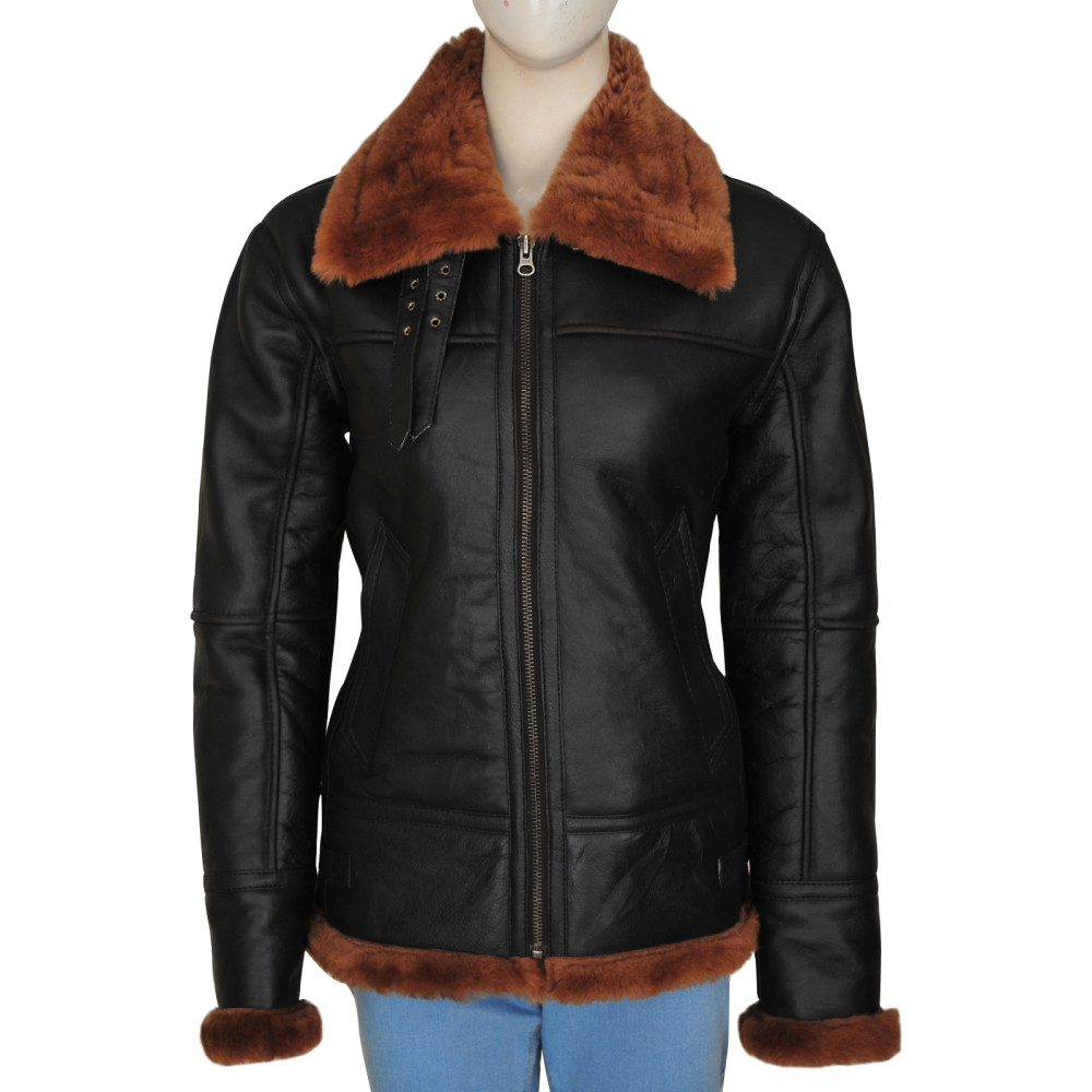 Presenting the Women B3 Bomber Shearling Leather Jacket that is of black chic color and has the amazing brown color shearling on the inside and the fur collar that is very elegant and stylish. Wearing it will forget you the cold outside and there is this detachable shearling collar that makes the dual look and appearance for you to have! A magnificent and top of the list jacket of the highest quality that you will not get often so think wisely and have this!