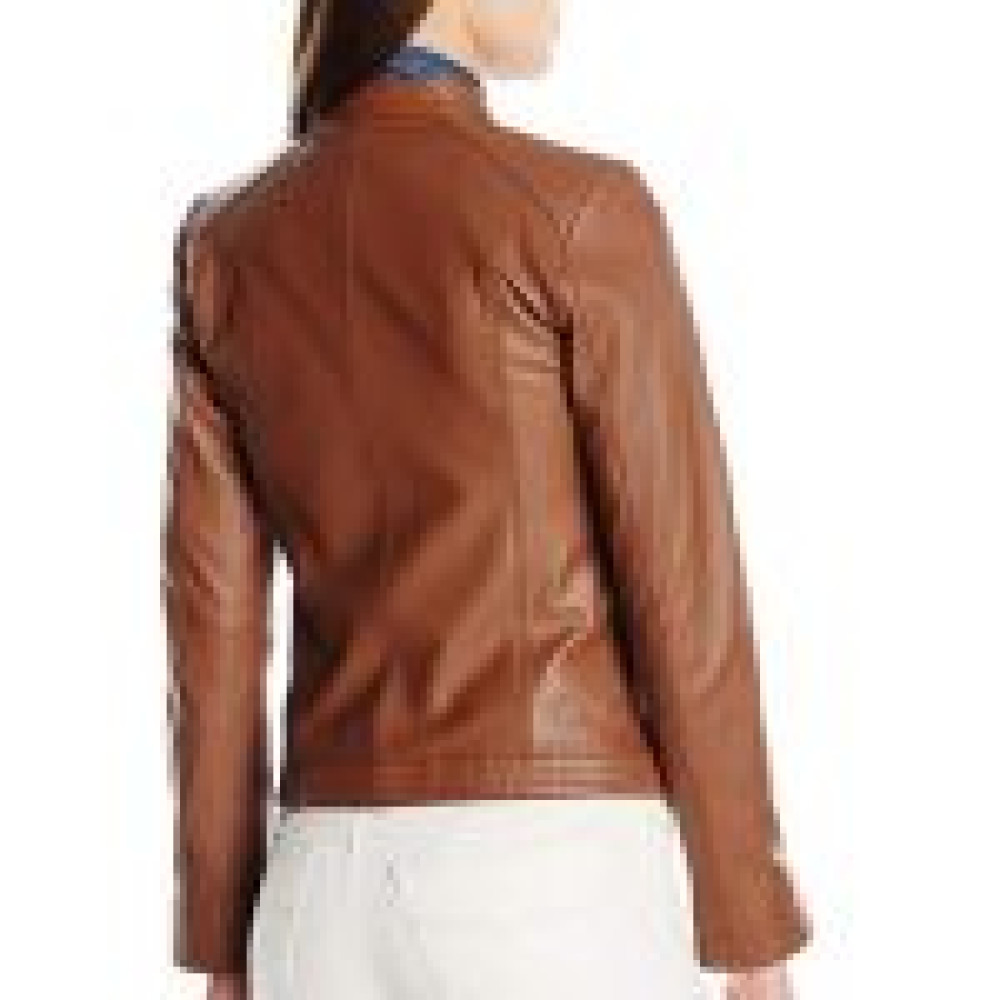 +44 07745262891Women Elegant Stitch Panel Leather Jacket