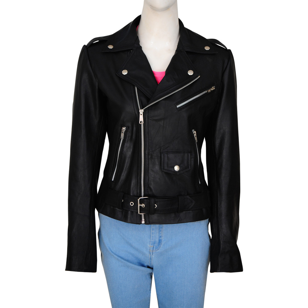 The jacket made from the real leather with the black color in it is the best and the amazing thing that the ladies can ask for and all that of this amazing and the best price. Asymmetric zipper closure and the belt buckle on the waistline makes the jacket amazing. Side zipper pockets are there too as this makes the jacket amazing and the very stylish. Have it for the amazing price as it is unique and distinctive.
